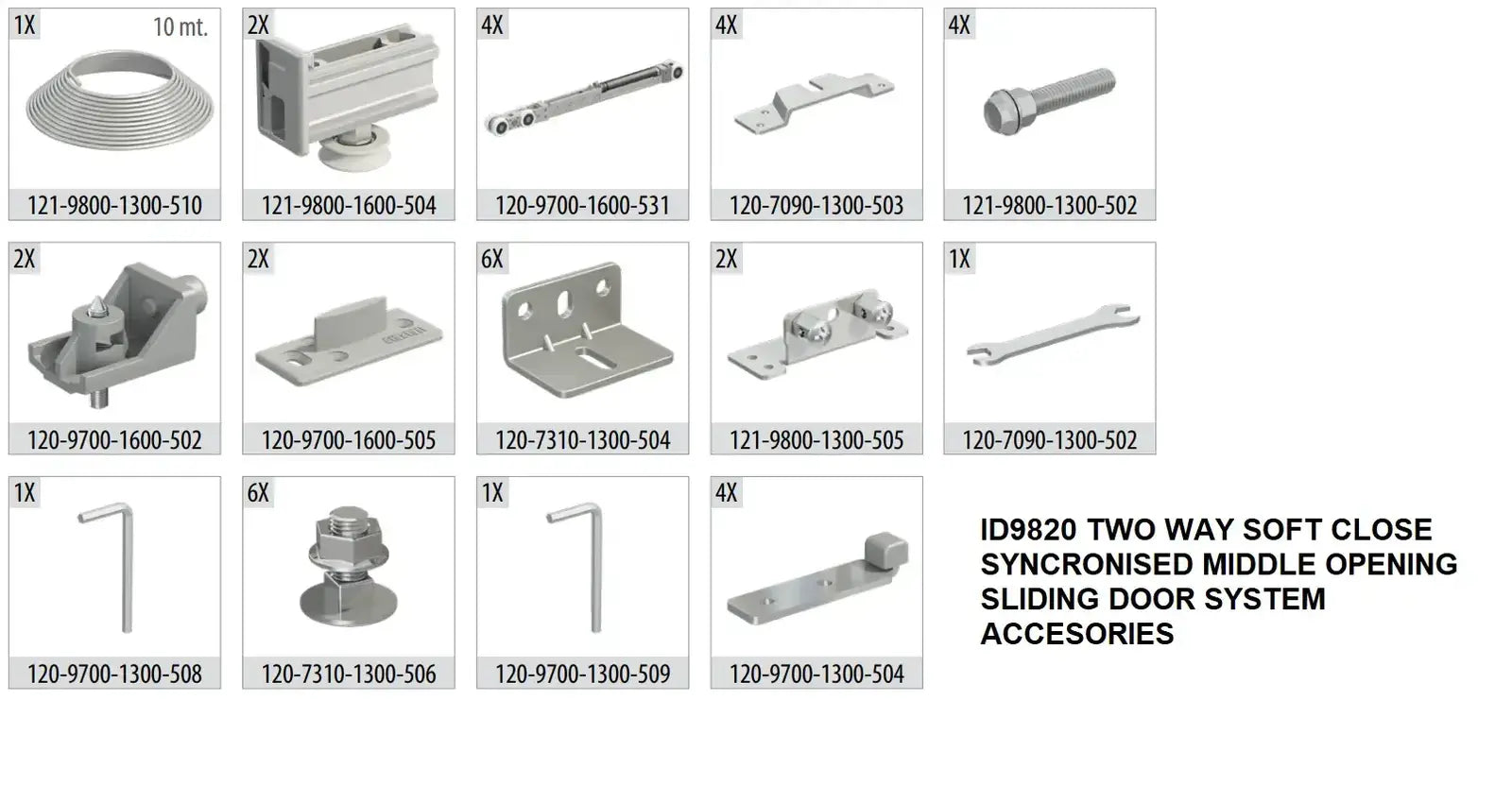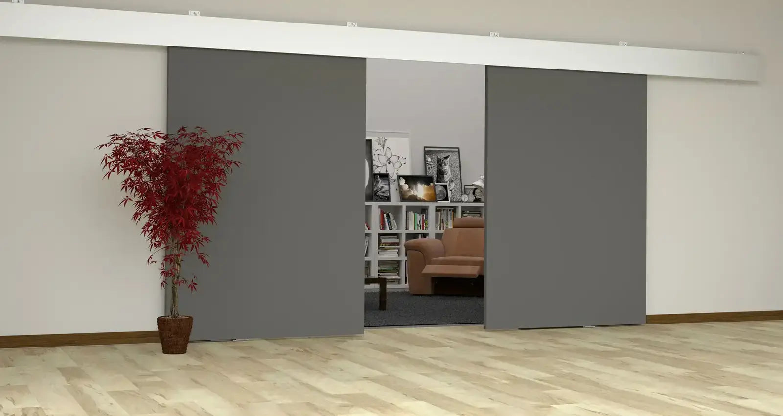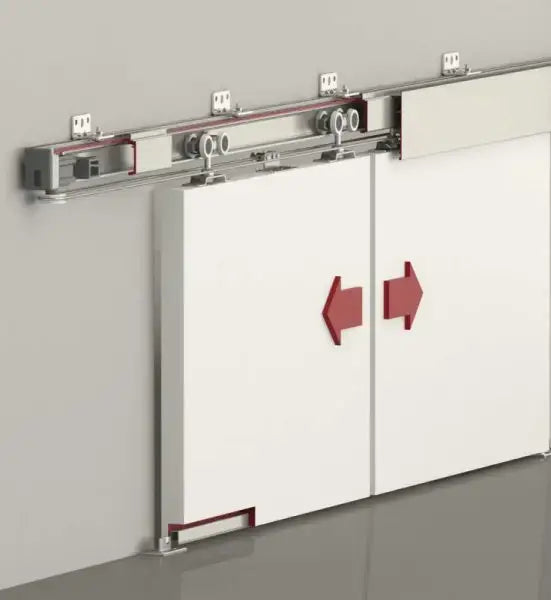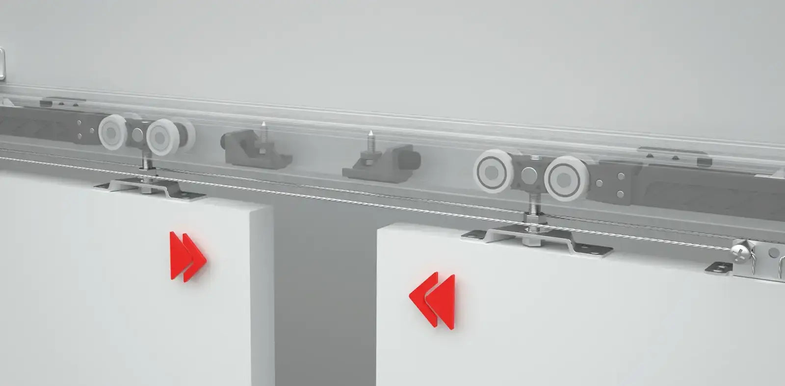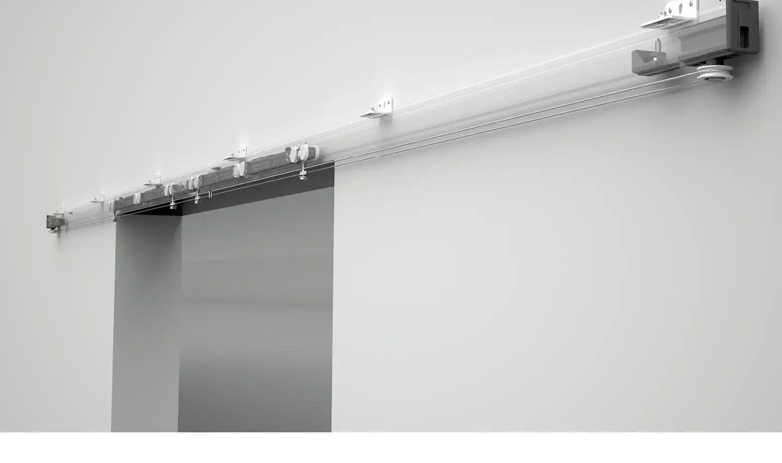 These systems are specifically designed for wood and aluminum panel doors, supporting up to 120 kg per door and accommodating door panels 20-60 mm thick.